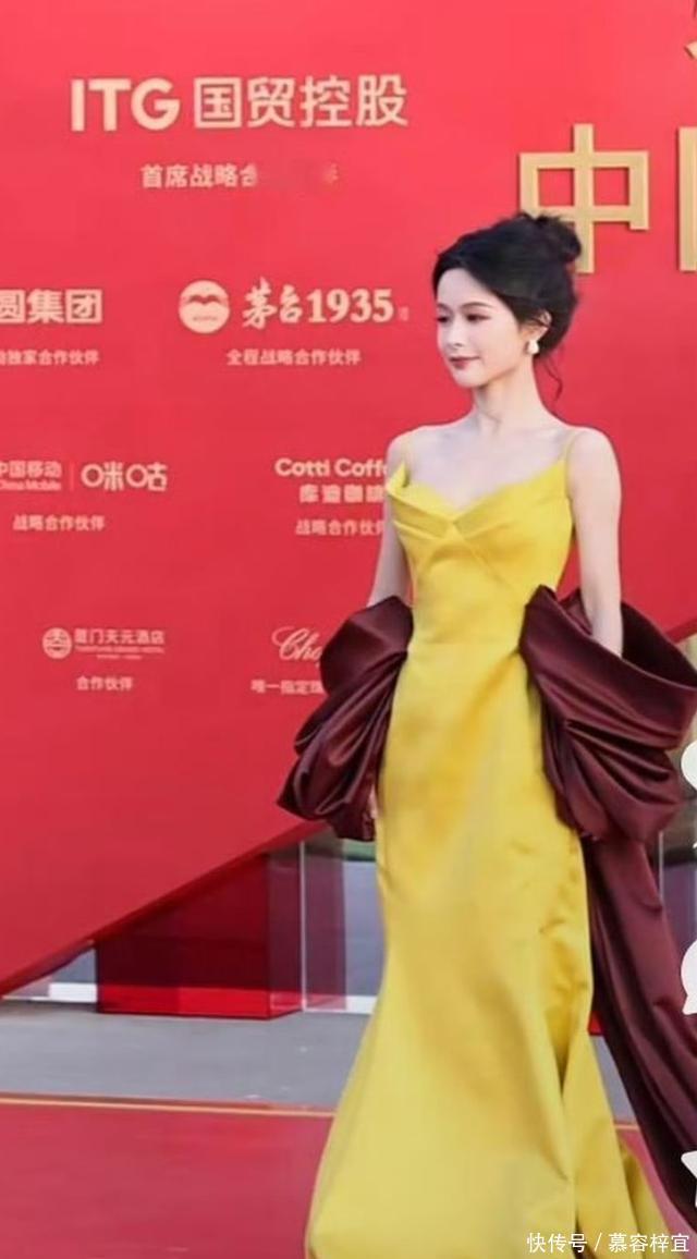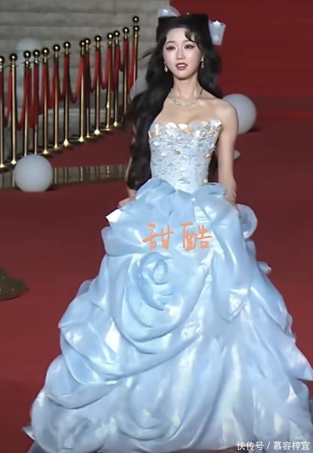 首次红毯表现还可以,一袭焦糖色纱裙搭配公主卷发,造型甜美。虽然略显紧张,但整体状态清新灵动,眼神清澈,扛得住镜头。